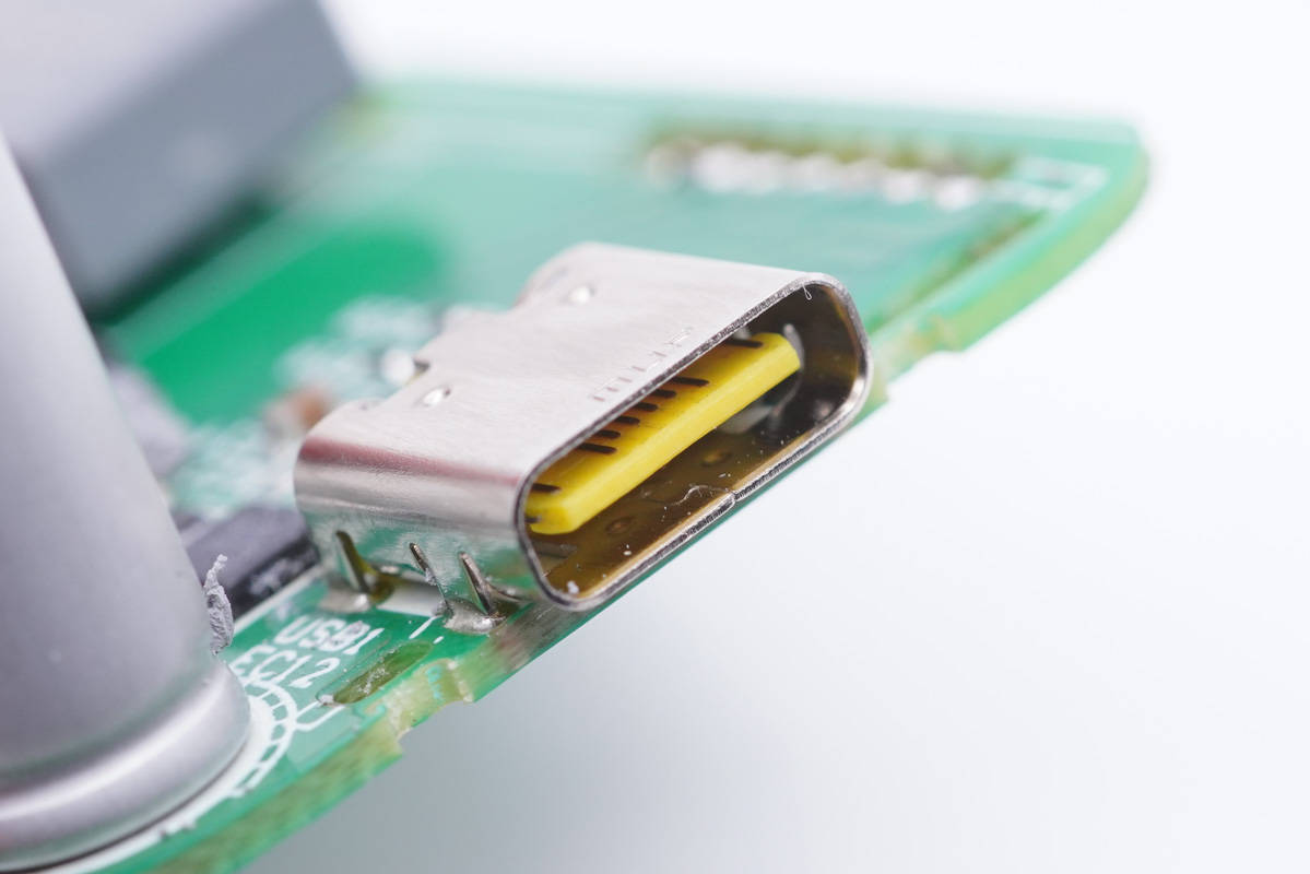 接口舌片为黄色,采用金属环装饰,整体看上去很精致。