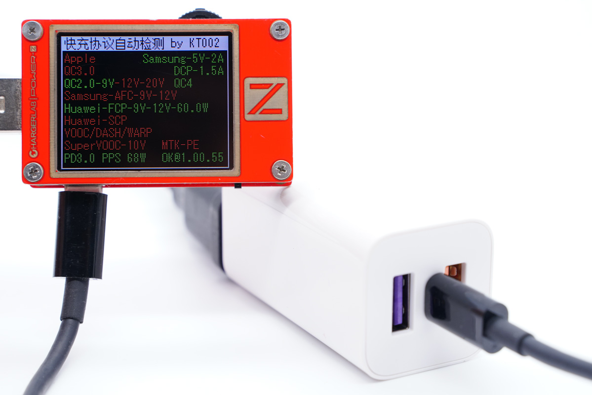 读取USB-A紫色接口的快充协议,除了私有大功率SCP快充外还支持QC2.0、QC3.0、FCP、SCP快充协议。