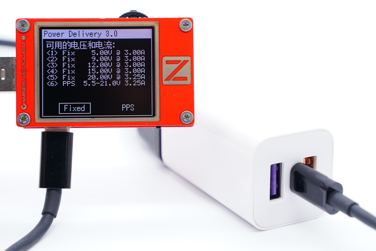 读取USB-C接口的PDO报文,支持5V3A、9V3A、12V3A、15V3A、20V3.25A五个固定输出档位,以及5.5-21V 3.25A一组PPS档位。