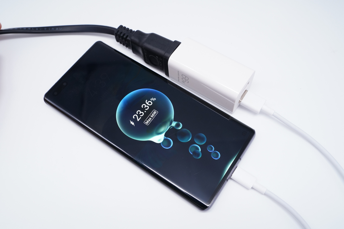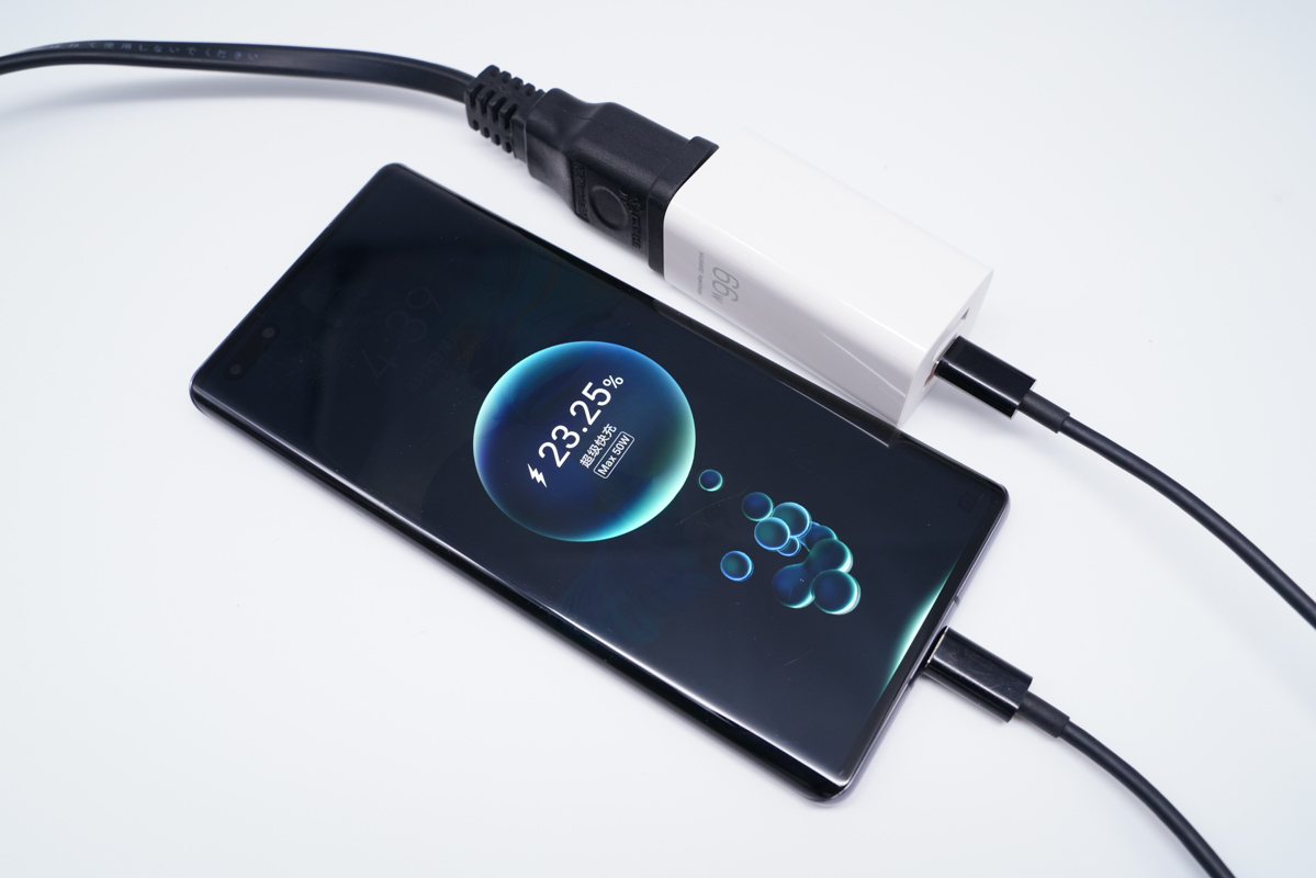 将充电接口换成USB-C,同样可以激活快充,并且手机充电UI显示MAX 50W超级快充字样。