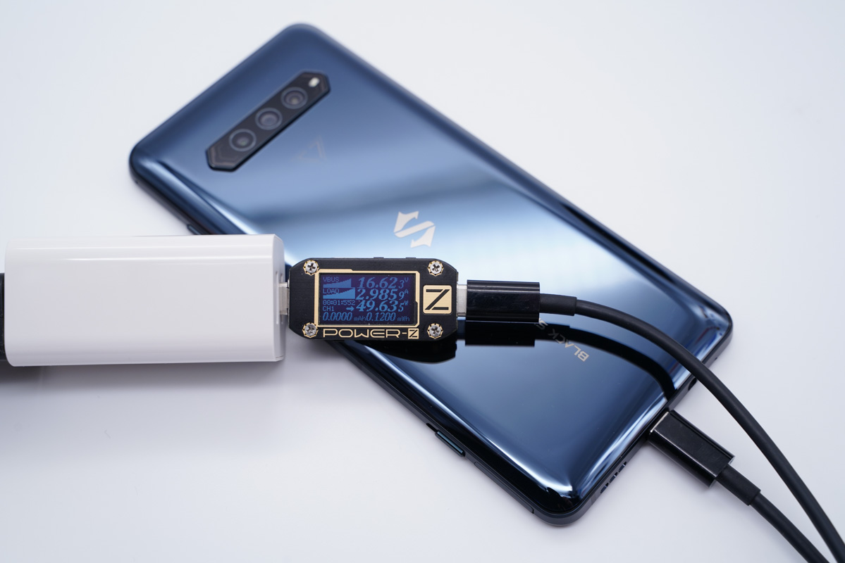 为黑鲨4 Pro充电可以触发16V高压快充,功率为16.62V 2.98A 49.63W。