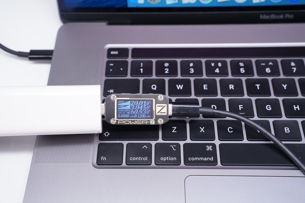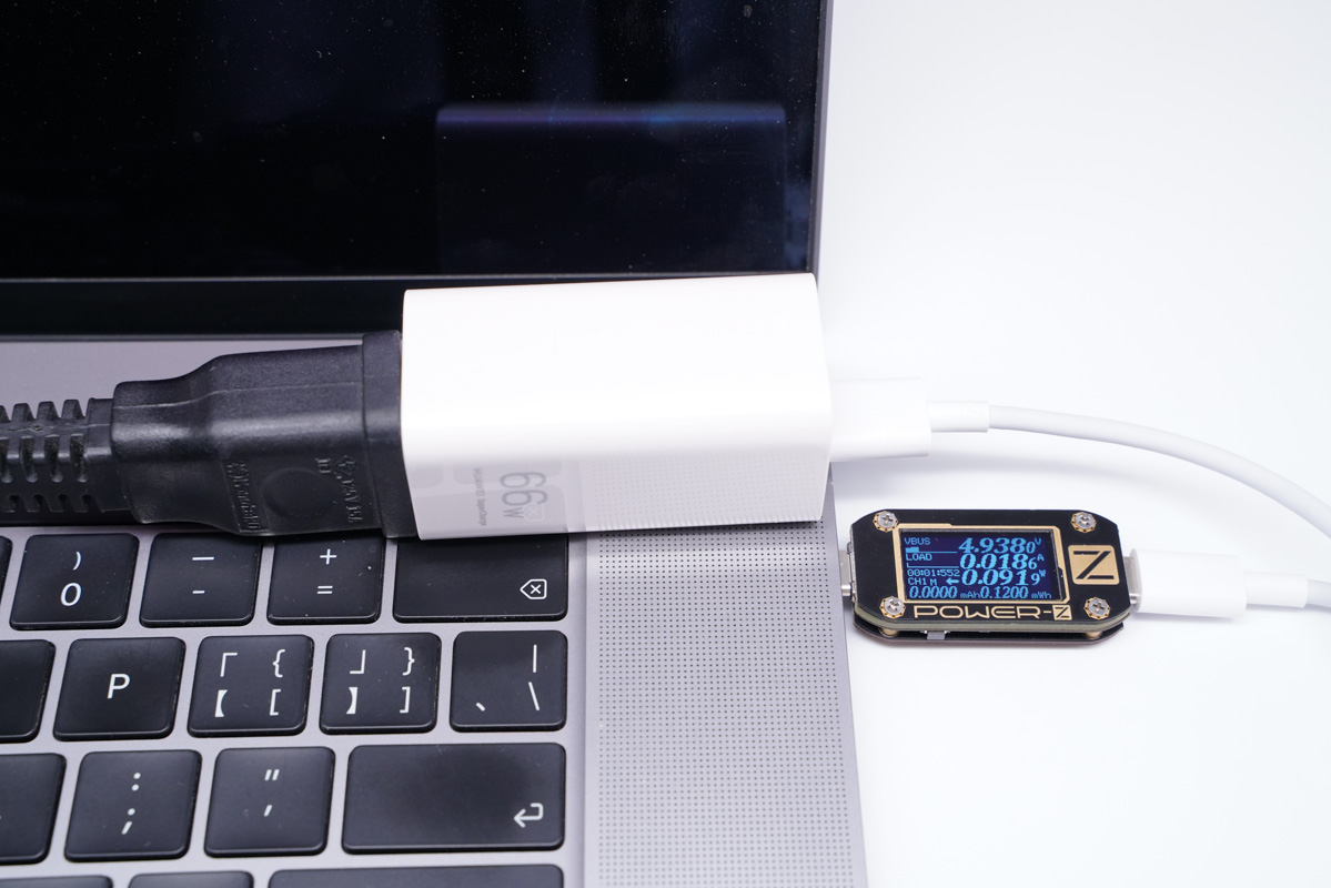 因为USB-C还支持65W PD快充,所以此次也采集了为MacBook Pro 16充电全程的数据。