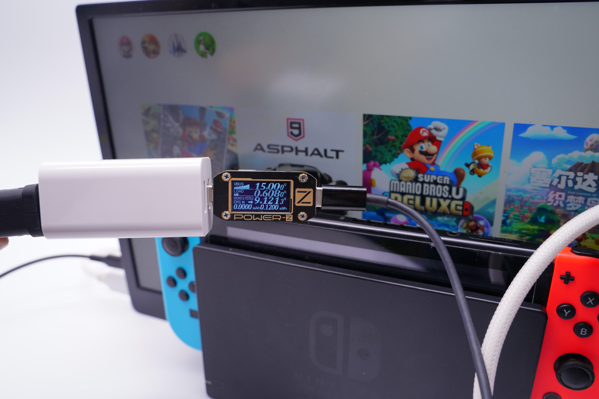 USB-C支持15V3A快充档位,实测可以成功激活Switch的底座TV模式,充电器输出15V电压。