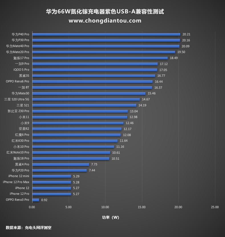 柱状图这里,华为机型的功率自然最高,其他设备处于正常的充电状态。