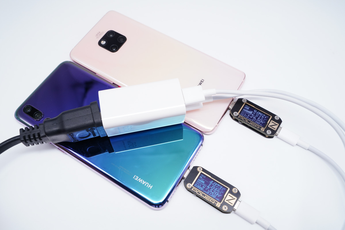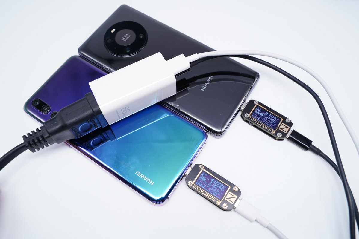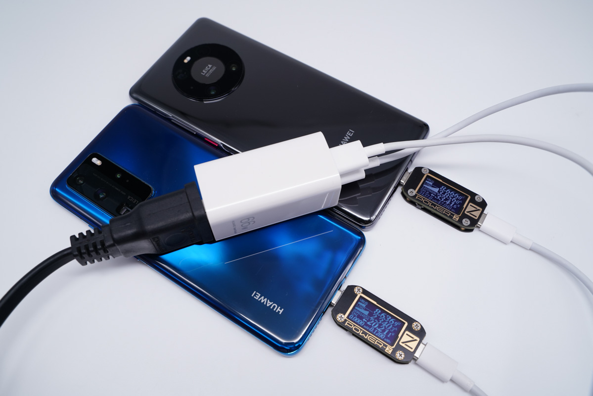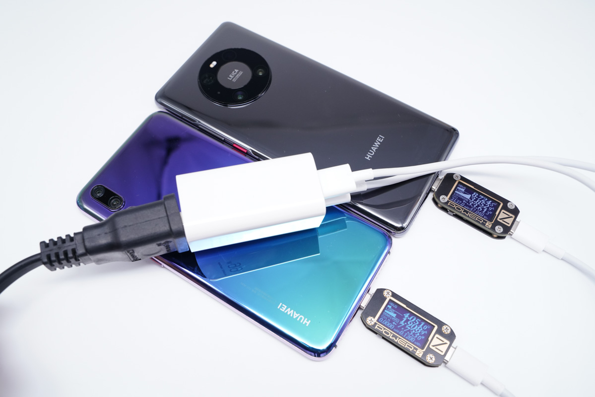 多口同时输出这里以华为机型为主测试了多种不同的使用情况,参数中仅介绍了多口同时输出时的功率分配为40W+22.5W,下面就用华为的几款不同的机型来实测是否可以触发快充。