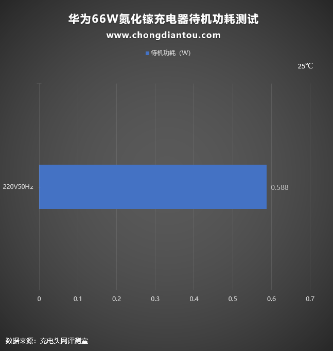 经过功率计测试,华为66W氮化镓充电器在220V 50Hz的空载功耗为0.588W,换算下来一年损耗的电能约为5.15KW·h,若市价电为0.6元/KW·h,则充电器一年的电费约为3.09元左右。