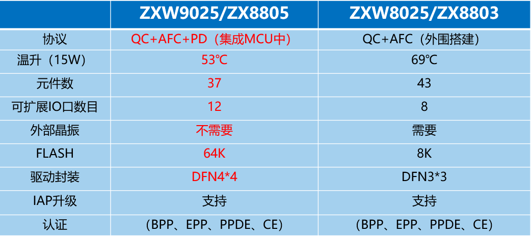 卓芯微ZX9025内置全新升级软件算法架构,大幅缩减QI认证时间。同时提供多个IO接口资源,提升产品扩展性,可实现客户产品功能定制,进行差异化设计。支持通过USB接口进行固件升级,无需拆开产品,降低升级难度。