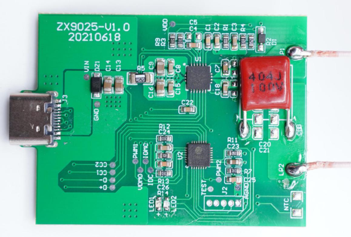 充电头网拿到的是采用了卓芯微ZX9025的无线充参考设计,只有两颗芯片,元件也非常精简。