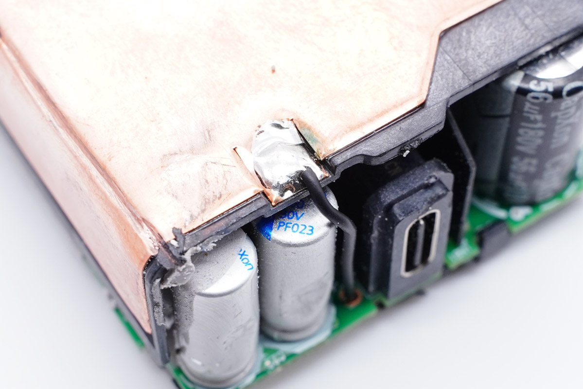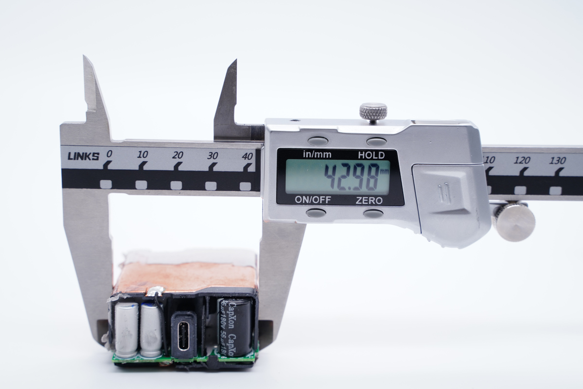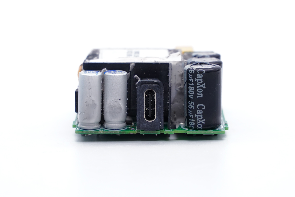 这里的电容设计跟市面上常见的PD快充不一样,电容明显变得更小了,这主要得益于采用了PI的MinE-CAP器件。