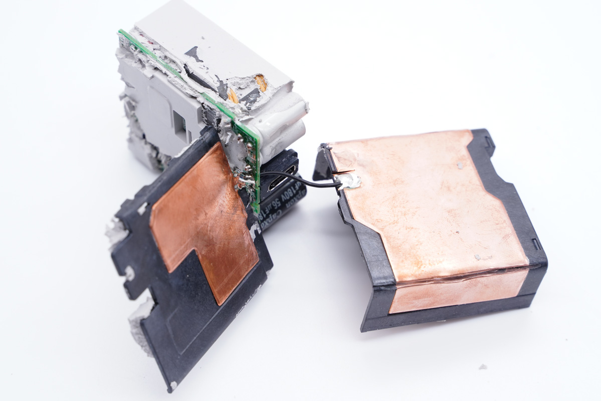 取下两块散热片,可见内部元器件和PCB之间注满了导热胶。