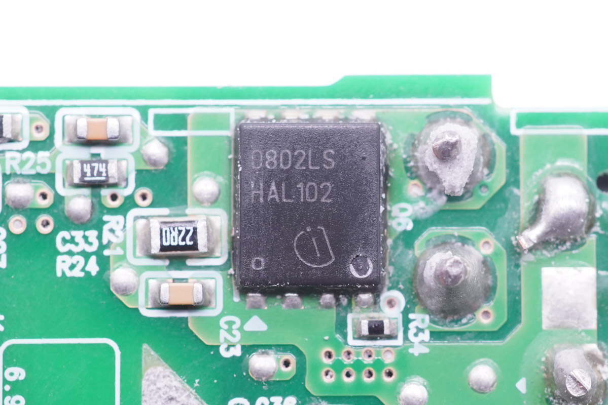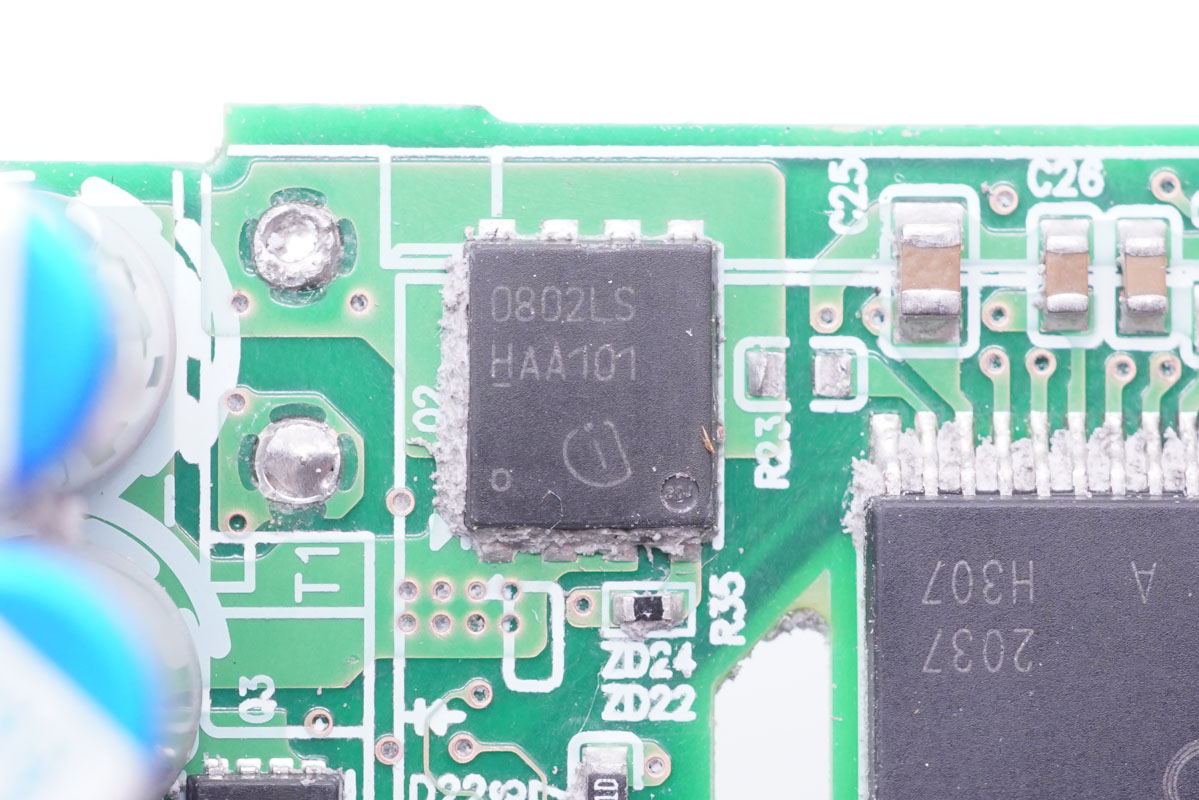 在PCB板背面对应的位置还有一颗英飞凌同型号的MOS管,两颗并联用于同步整流。