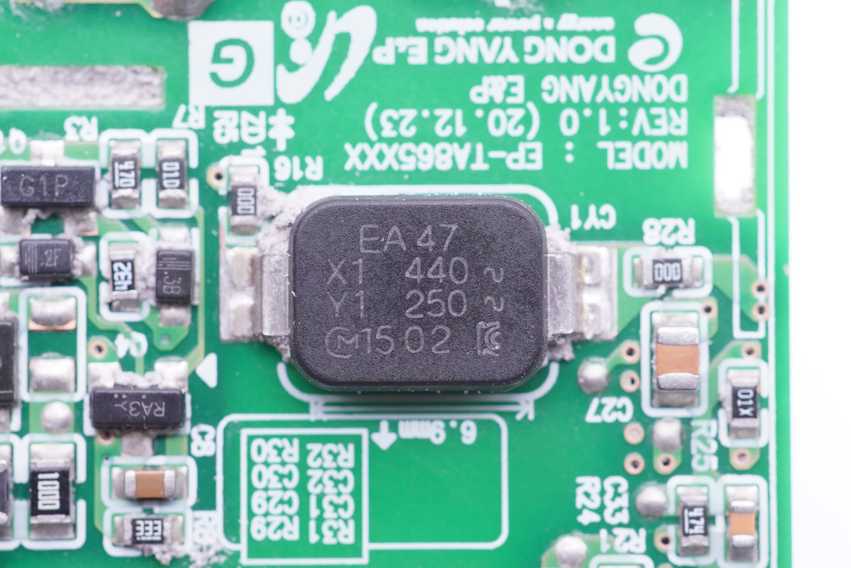 此外,初级和次级之间设有一颗贴片的Y电容,来自村田,用于输出抗干扰。