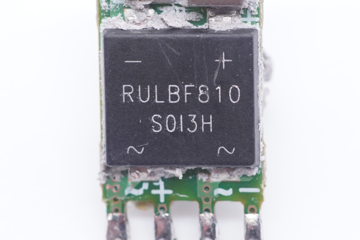 输入端的整流桥通过一块小PCB板垂直焊接在主控PCB板上,节省立体空间。