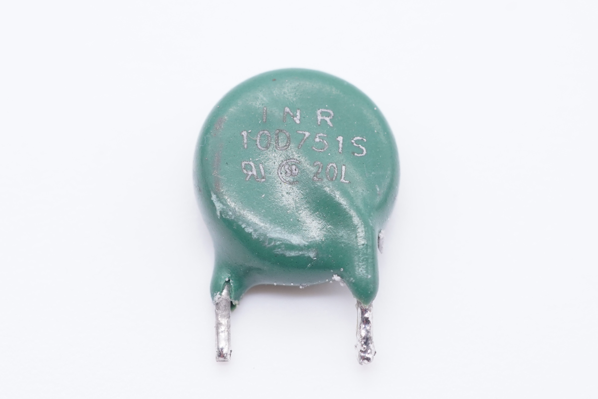 这颗绿色的就是压敏电阻,当输入电压过高时,可以短路输入,让保险丝熔断,保护后级电路。