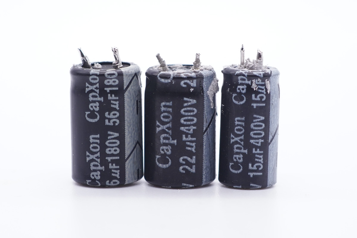 整流之后采用了三颗丰宾的高压电解电容滤波,其中两颗耐压为400V,容量分别为 15μF和22μF,另外一颗为180V 56μF。