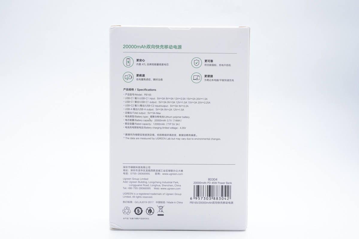 充电头网本次拆解的便是绿联新款20000mAh 45W双向快充移动电源PB165,产品主打大容量和大功率快充,适合出远门使用,可让手机快速满血复活,甚至还能给笔记本充电,非常实用。下面我们就来看看这款移动电源做得如何。