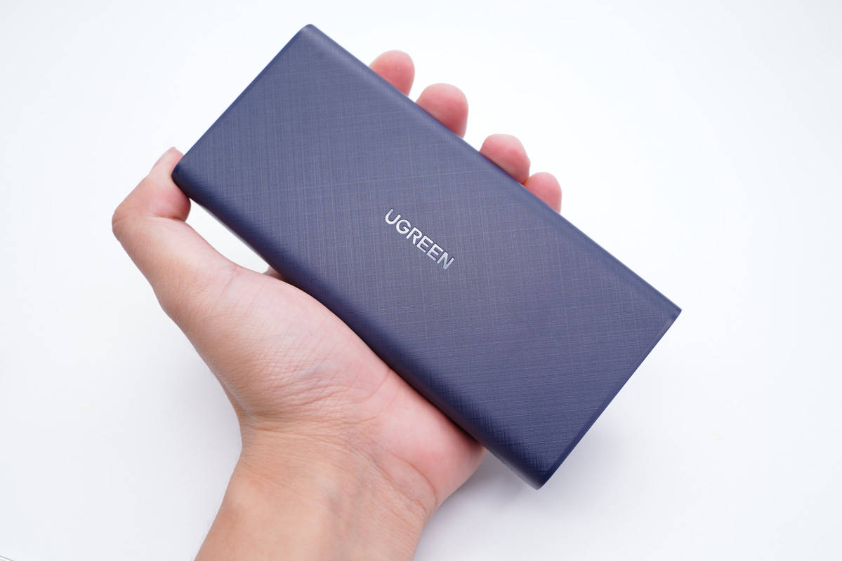 机身正背面晒纹设计进行装饰,同时增加使用手感,此外正面中心凹印UGREEN品牌。