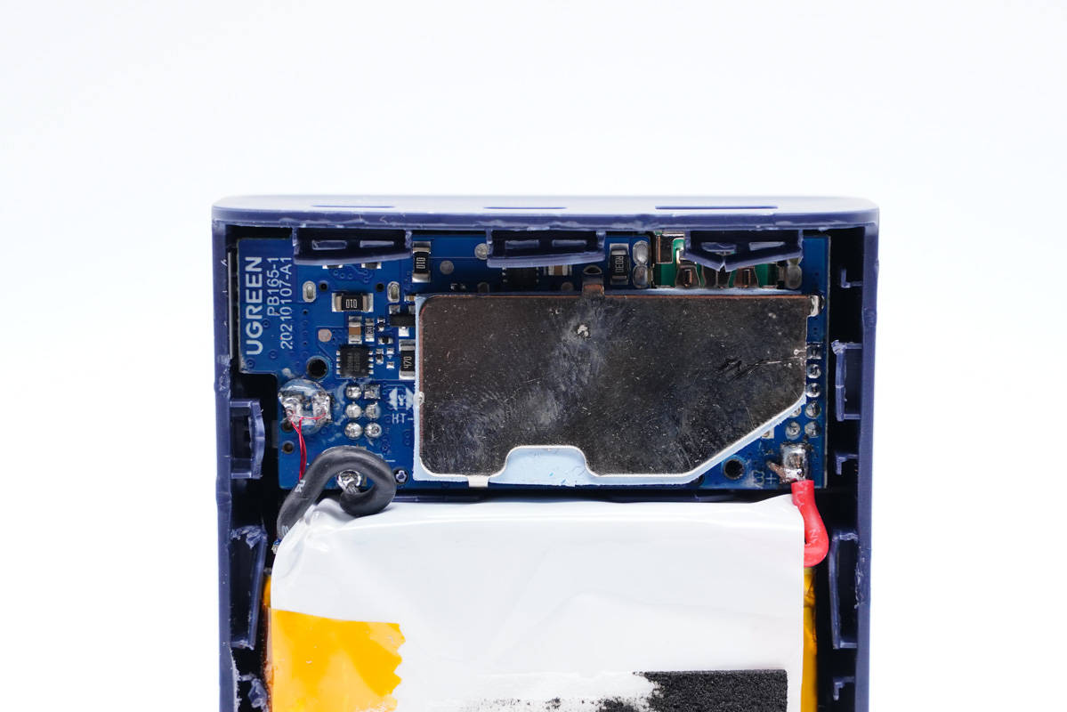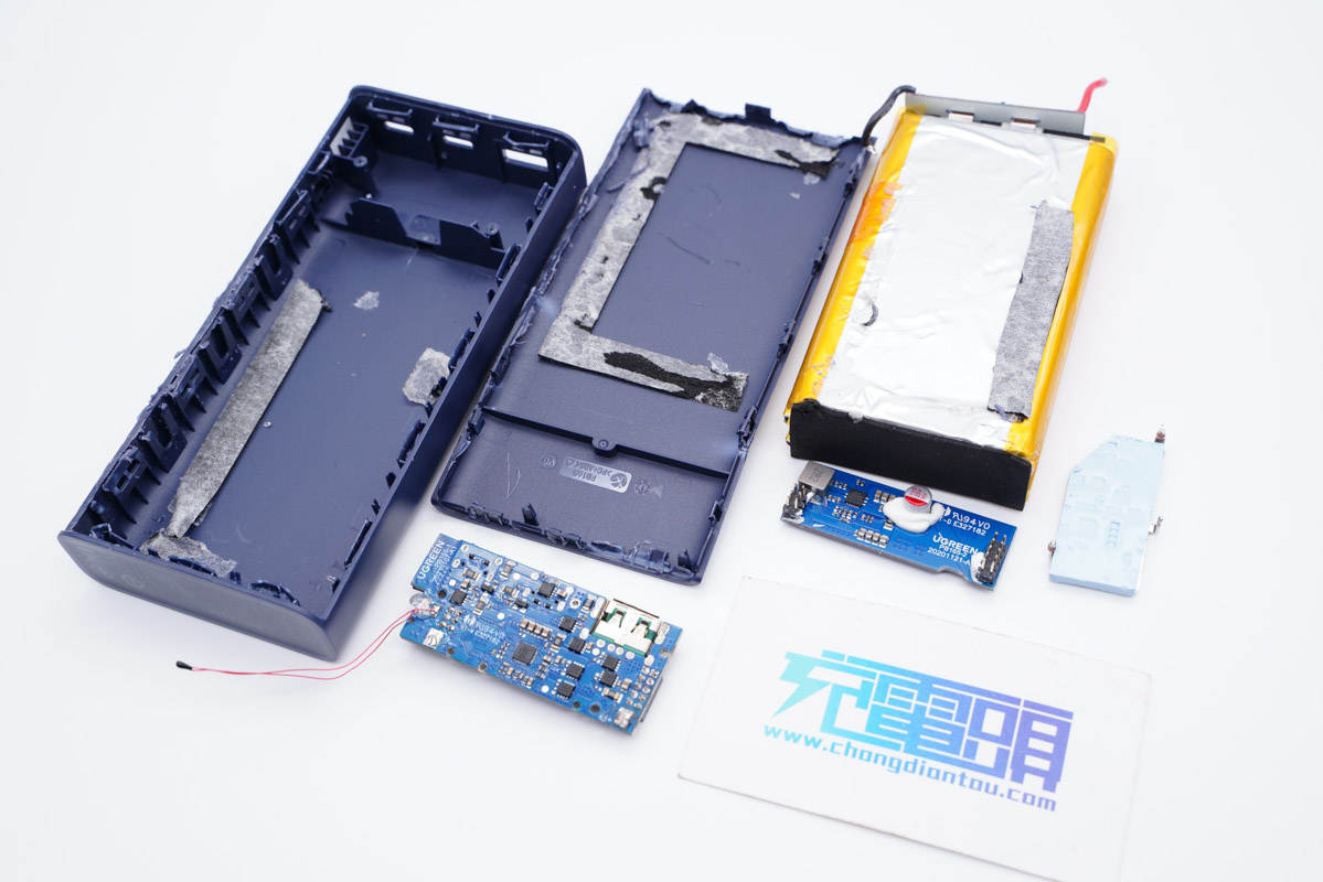 充电头网通过拆解发现,移动电源内部做工也十分讲究,机身壳设有隔离板隔离PCB板和电芯,电芯来自知名大厂ATL,质量可靠,使用寿命有保证。此外电芯贴有泡棉进行跌、摔等物理上的保护,另外设有锂电保护电路,具备电池均衡,并配有热敏电阻进行温度监控。