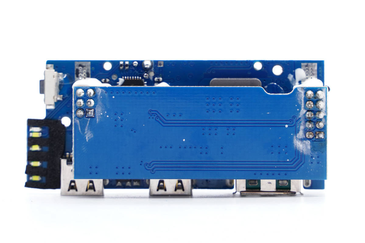 另一块小板上设有USB-A口升降压电路,电容、电感也是打胶加固。