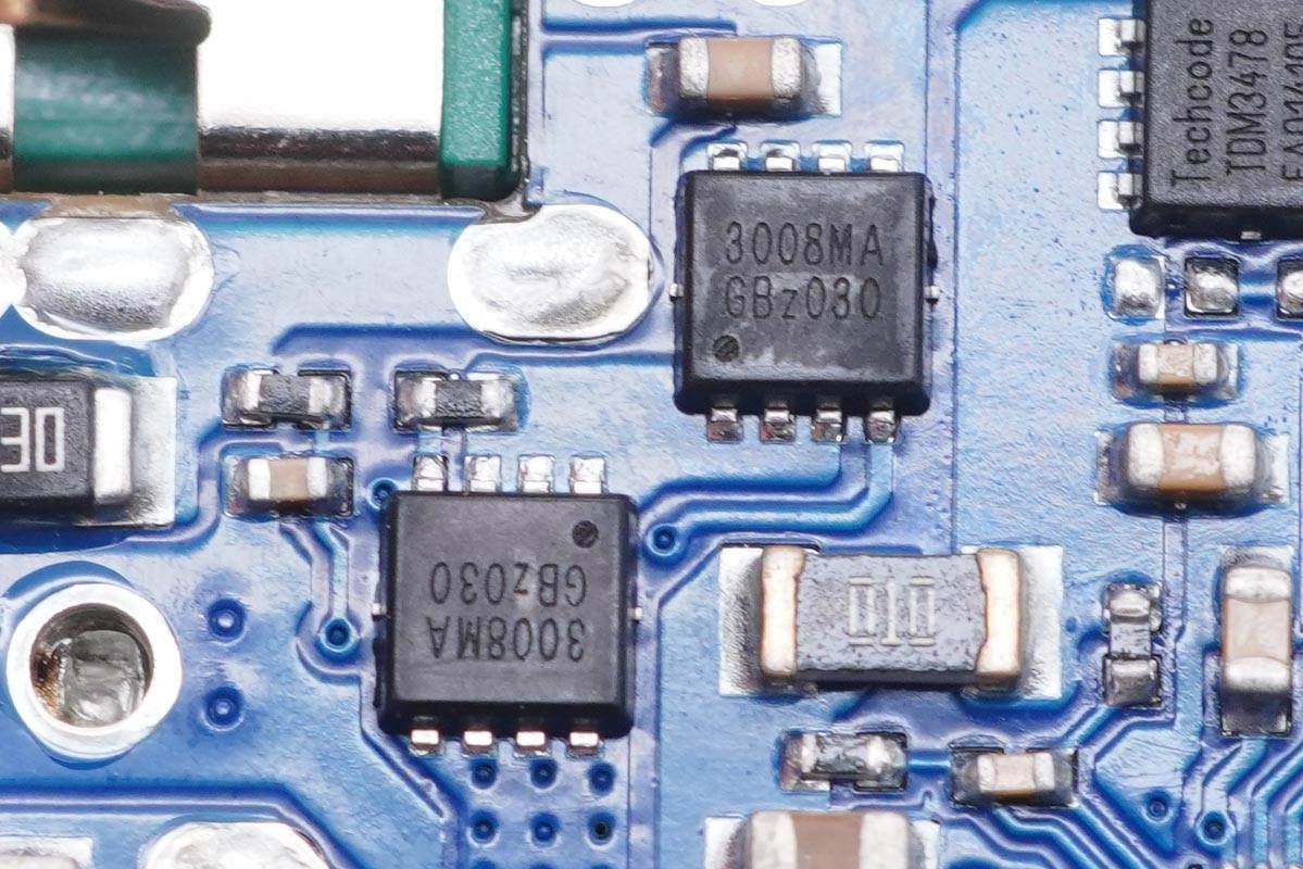 两颗芯电元PED3008MA,耐压30V,用于两个C口充放电切换。