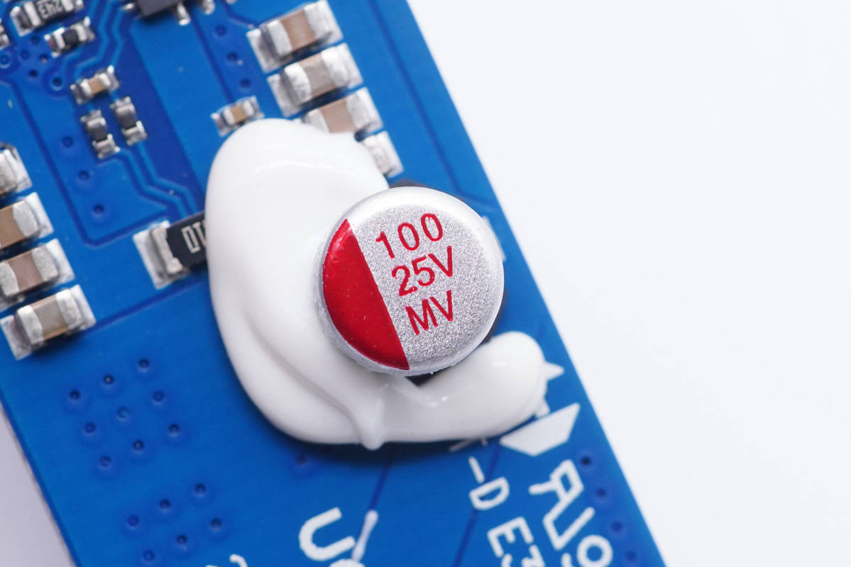 输入输出滤波固态电容,规格为25V 100μF,打胶加固。