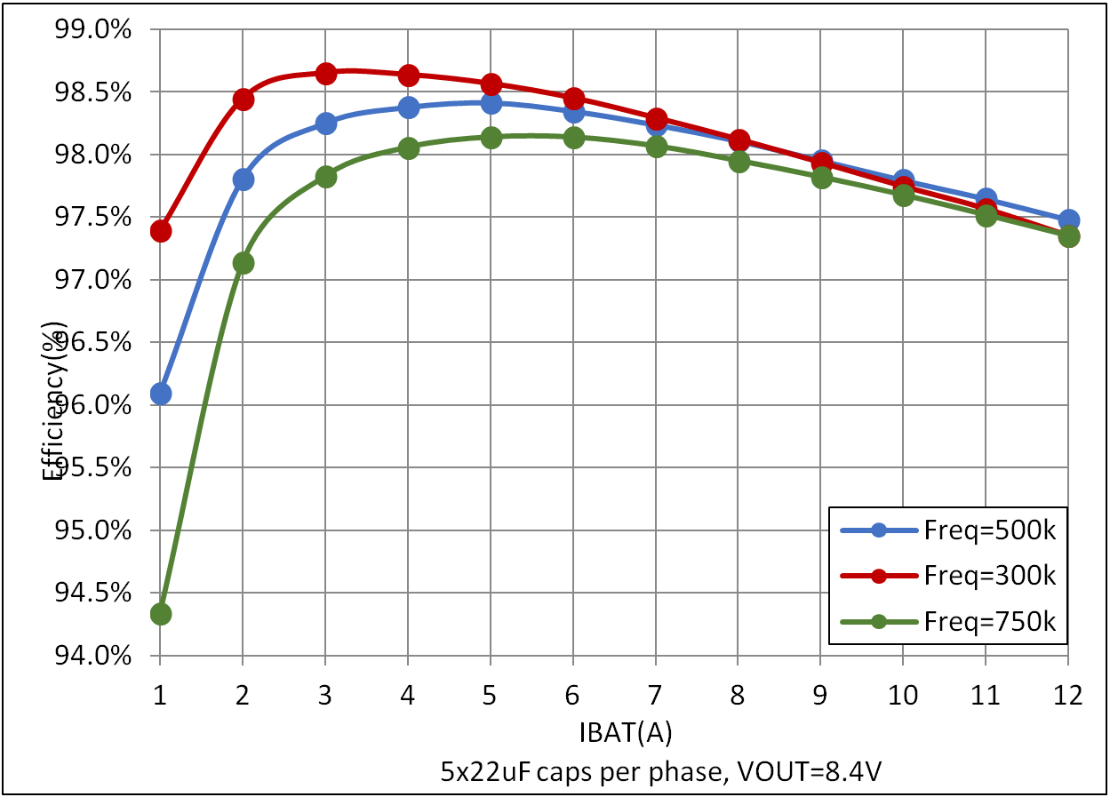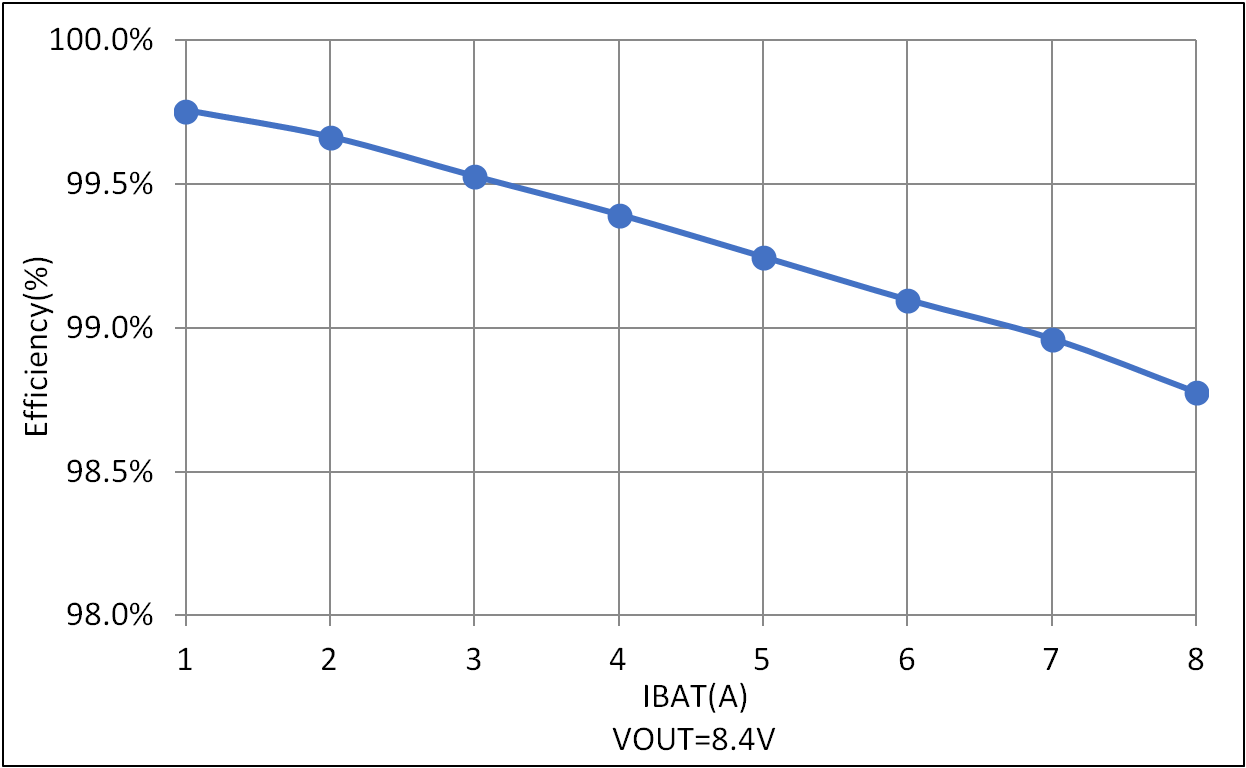 从下图可以看出,在3A负载下,SC8571效率高达98.65%,在8A负载条件下,SC8571依然可以达到98.12%的充电效率。