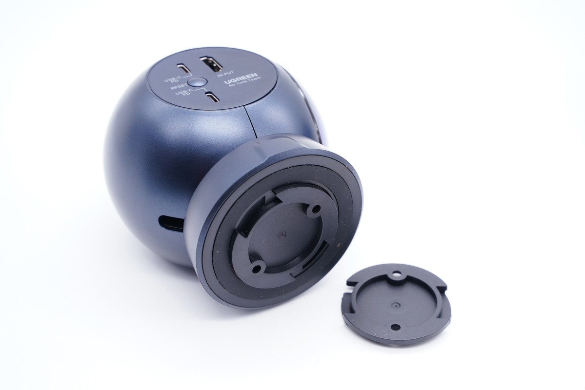 底部是一个固定装置旋盖,使用膨胀管和螺丝,可以将UGREEN绿联毫米波无线投屏器固定在其他的地方,比如墙壁,桌面等等。