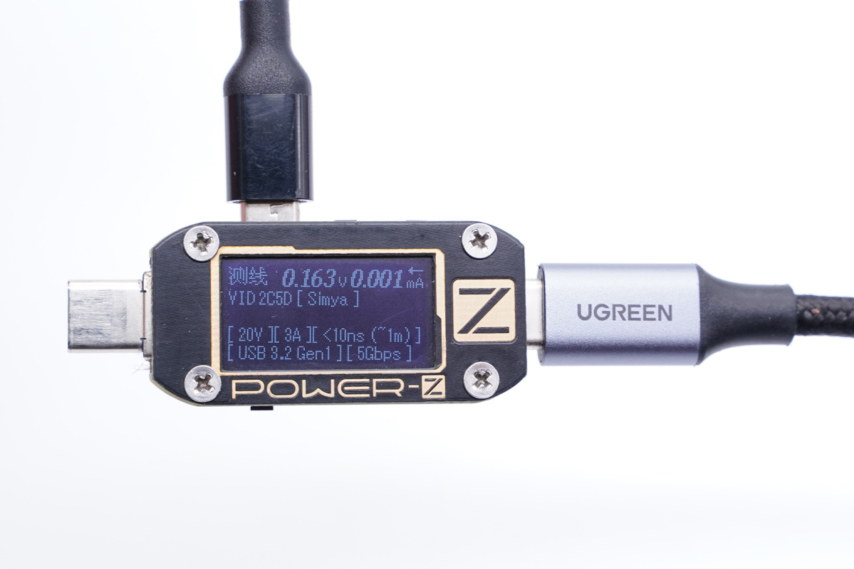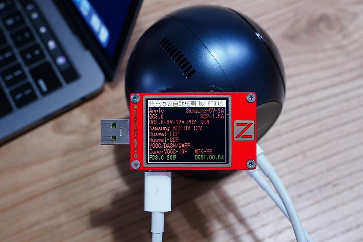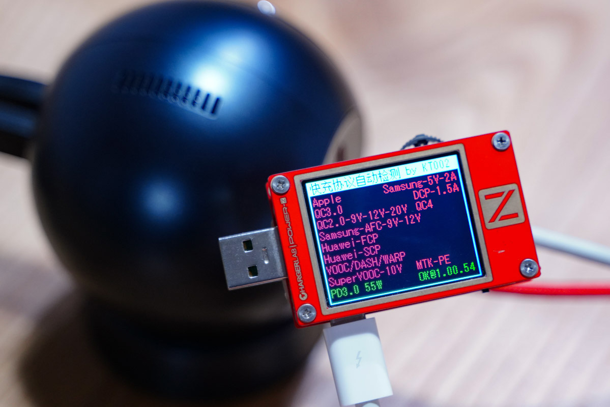 在信息参数中了解到UGREEN绿联毫米波无线投屏器支持PD3.0快充,拿出ChargerLAB的POWER-Z KT002实测USB-C接口支持55W的PD3.0快充。