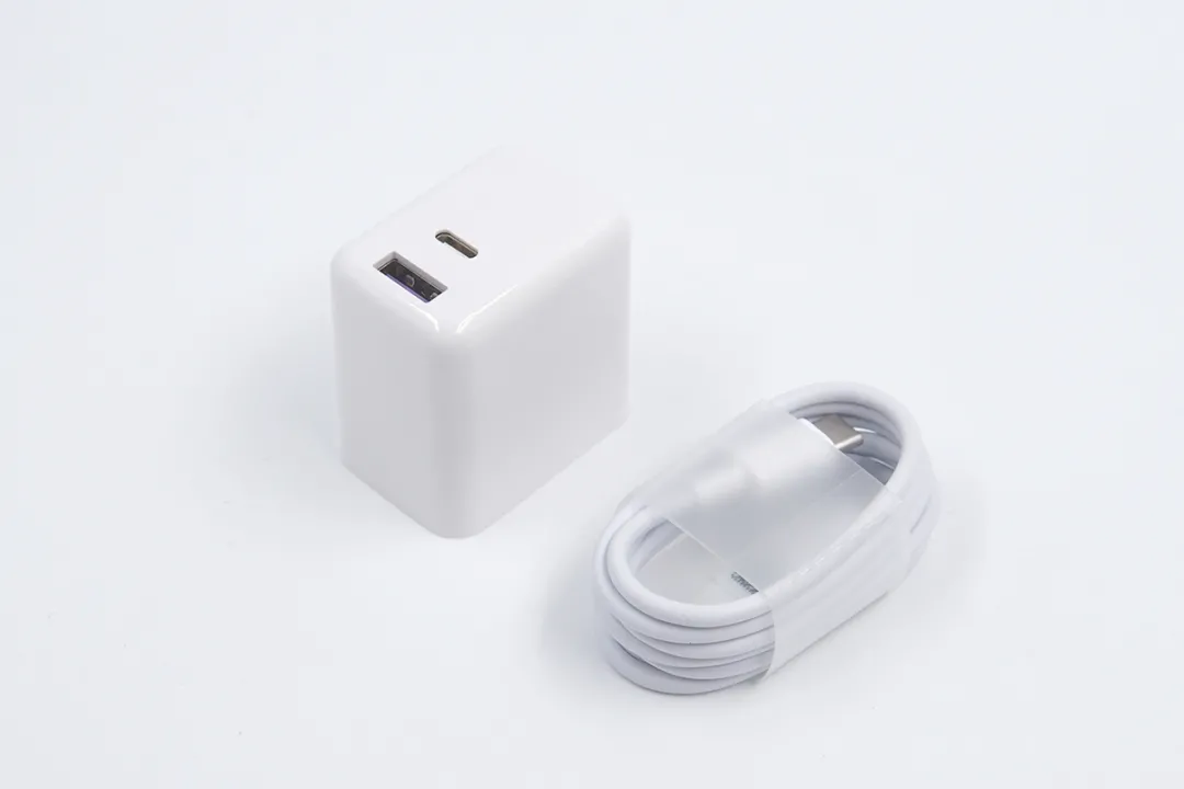 充电器采用PC阻燃材质白色外壳,表面亮面烤漆工艺处理,边角过渡圆润,整体洁白光滑设计简约。并随机赠送了一根1米长度的100W数据线。