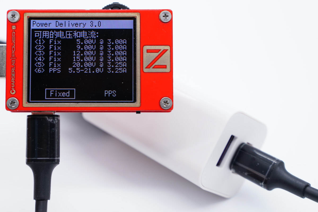 PDO报文显示C口具备5V3A、9V3A、12V3A、15V3A、20V3.25A五组固定电压档位,以及5.5-21V 3.25A的PPS电压档位。