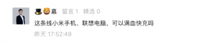 答:联想电脑可以,小米手机不太行。首先以往测试,用华为线充小米,PPS兼容性不太好。再就是小米手机快充都是魔改的A口,这种C口线本身就不太好适配,所以充小米手机也就是常规的18W左右握手QC协议,联想电脑可以100W PD快充。
