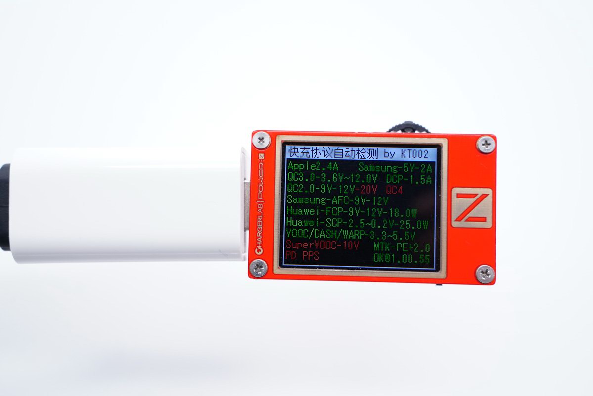 使用POWER-Z KT002 USB测试仪进行快充协议轮询,从屏幕中可以看到,飞天鹰30W多协议快充充电器支持APPLE2.4A、Samsung5V2A、QC3.0、QC2.0、DCP、AFC、FCP、SCP、PE等快速充电协议,并且有赖于特殊触点与快充芯片的支持,它还支持VOOC/DASH/WARP等低压直充协议。