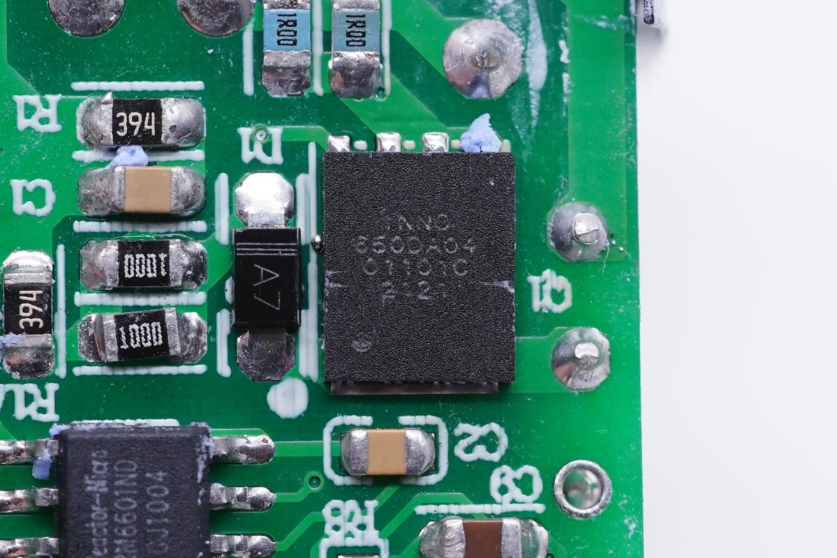 开关管采用英诺赛科INN650DA04,这是一颗DFN5*6封装的氮化镓开关管,具有小体积,散热快,开关损耗低等优势。