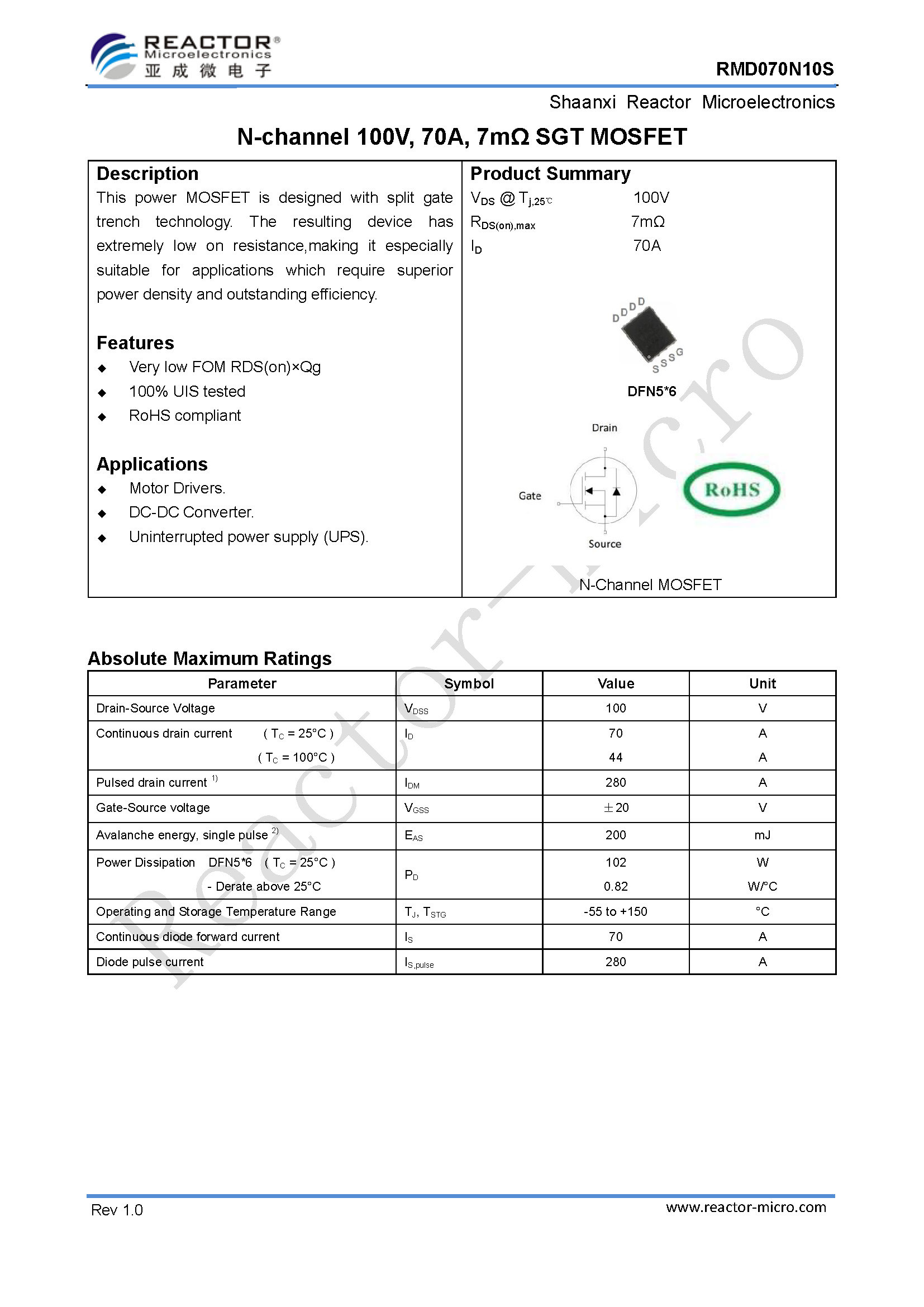 RMD070N10S详细资料。