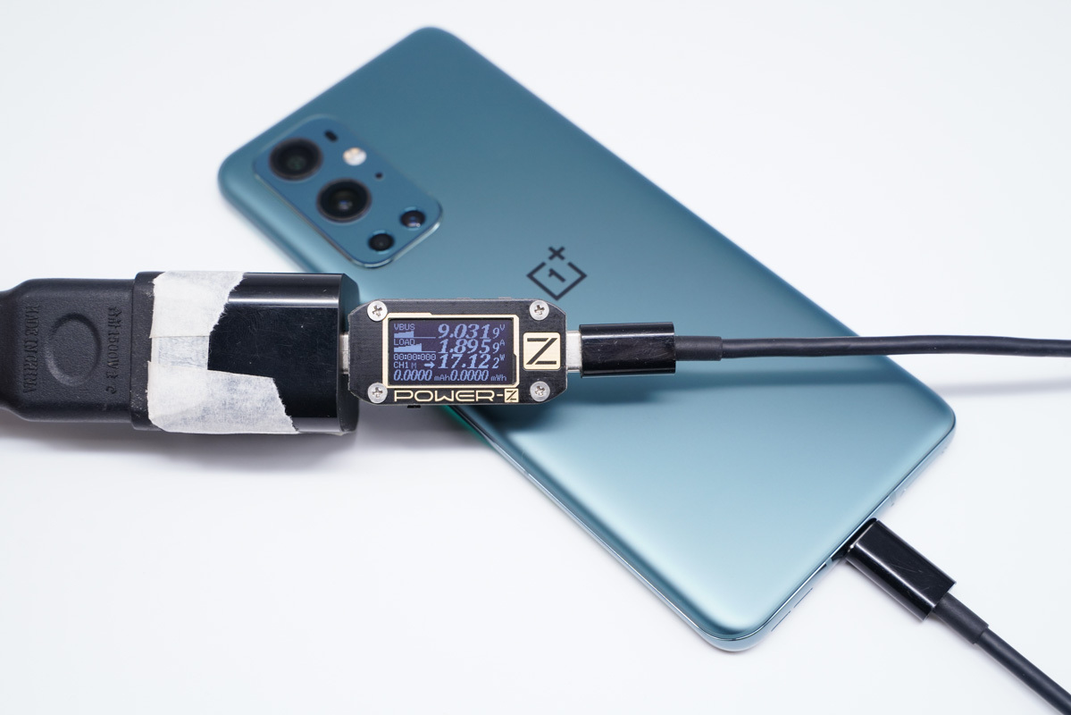 使用充电器为一加9 Pro充电,功率为9.03V 1.89A 17.12W。