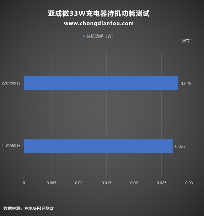 充电器如果经常插在插座上不使用也是会耗电的,只不过非常小而已。经过功率计测试,亚成微33W氮化镓快充方案在220V 50Hz的空载功耗为0.028W,换算下来一年损耗的电能约为0.24KW·h,若市价电为0.6元/KW·h,则充电器一年的电费约为0.14元左右。