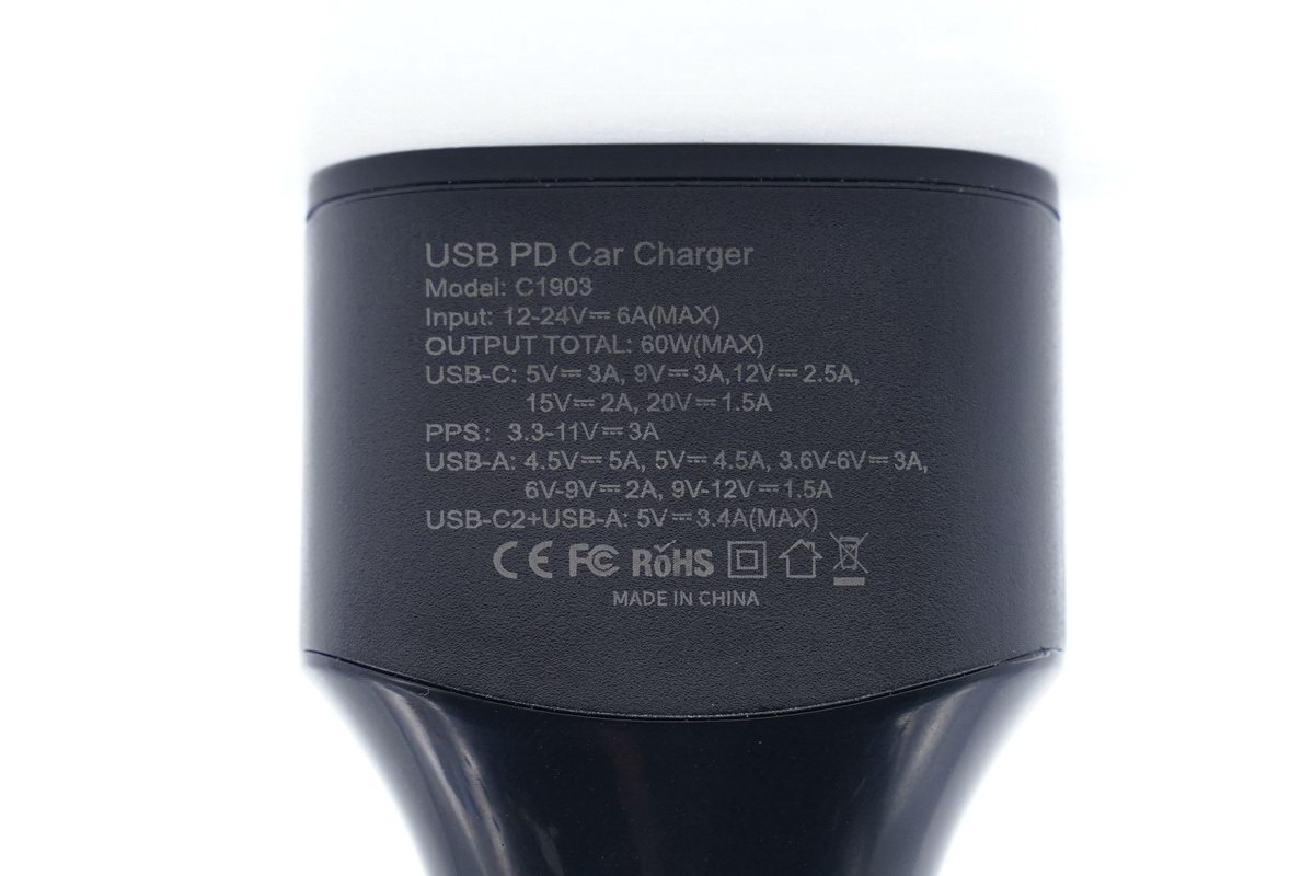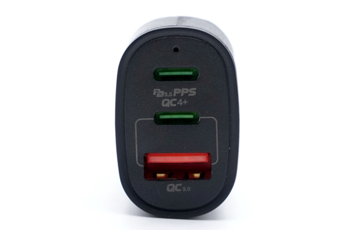 鸿达顺60W车充共有三个输出口,分别是两个USB-C PD快充输出口,一个USB-A输出口,也就是俗称的2C1A万金油配置,可以为主流数码产品提供PD快速充电。