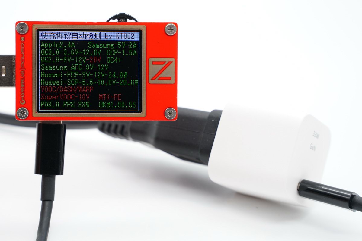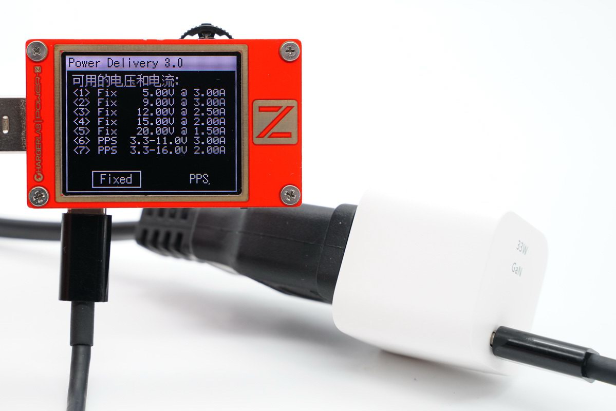 采用POWER-Z KT002 USB测试仪读取PDO报文,充电器于PD3.0快速充电标准开发,带有5V3A / 9V3A / 12V2.5A / 15V2A / 20V1.5A五个固定电压输出档,另外还带有3.3-11V3A / 3.3-16V2A两组PPS电压子集。