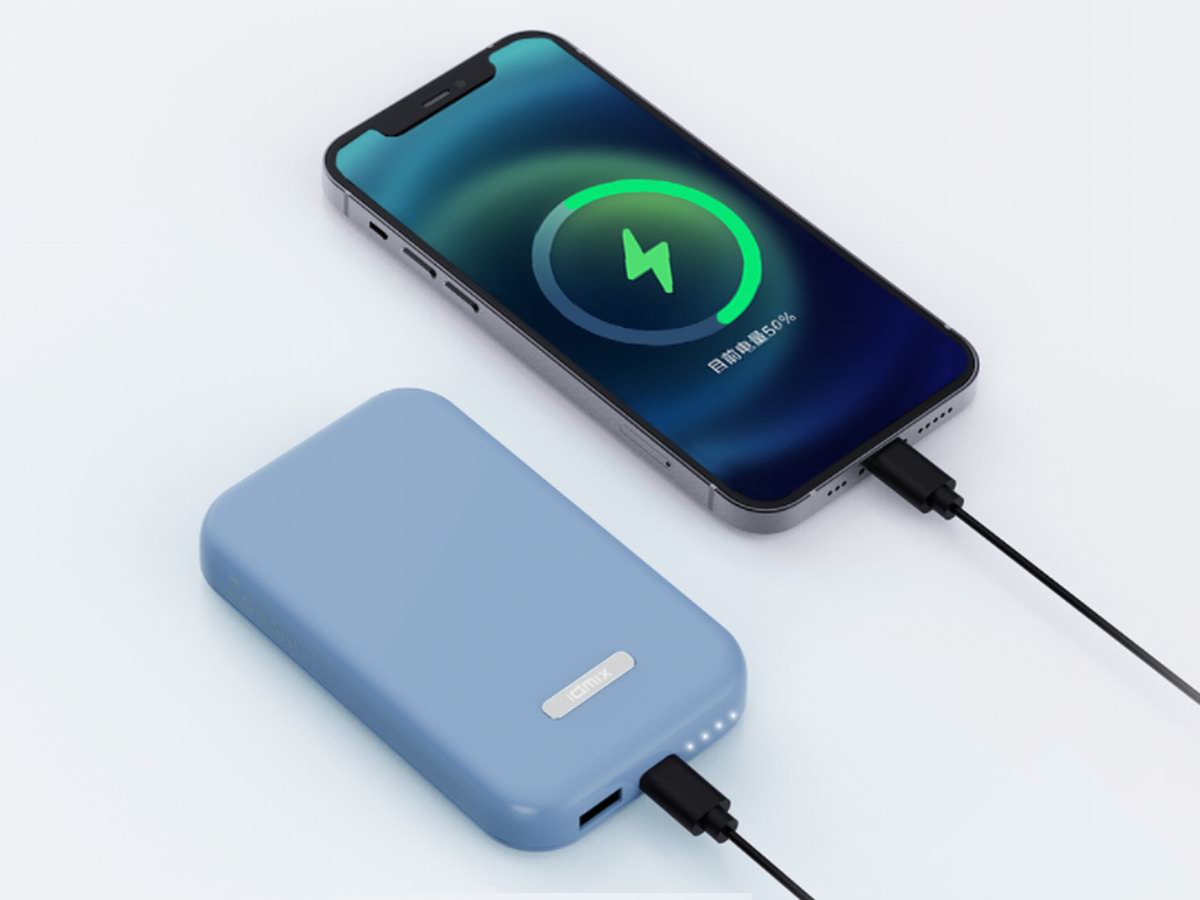 IDMIX磁吸无线充移动电源搭载磁吸无线充电系统,贴合在手机背部使用时不会阻挡摄像头,无线充电模块最大输出功率15W,并向下兼容10W、7.5W、5W等多种输出模式。磁吸部分采用高强聚磁吸器件,提供3500+Gs吸力牢固吸附iPhone 12系列,靠近自动精准对位线圈,提供便捷高效的无线充电体验。