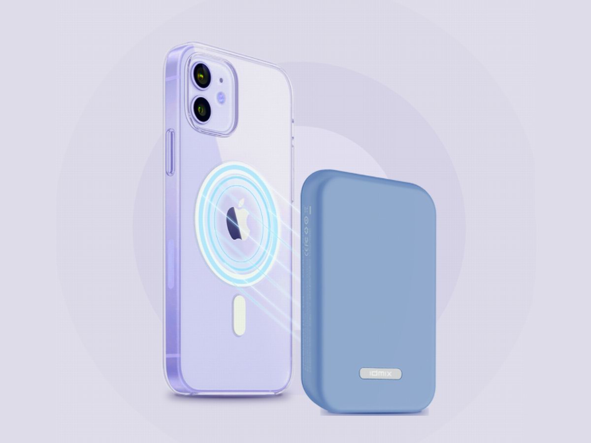 IDMIX磁吸无线充移动电源带有磁吸无线充电模块,支持iPhone 12系列使用,其他Qi无线充电设备也同样可以使用。内置10000mAh大容量电池组,可满足手机一整天续航需求,1A1C双向有线快充接口让用户可以作为常规移动电源使用,更快地充入电量。IDMIX磁吸无线充移动电源相比苹果原厂磁吸无线充电宝,拥有更大的电量储备,无需线缆外带直接可用,并支持有线快充,为用户提供更便捷的充电体验。