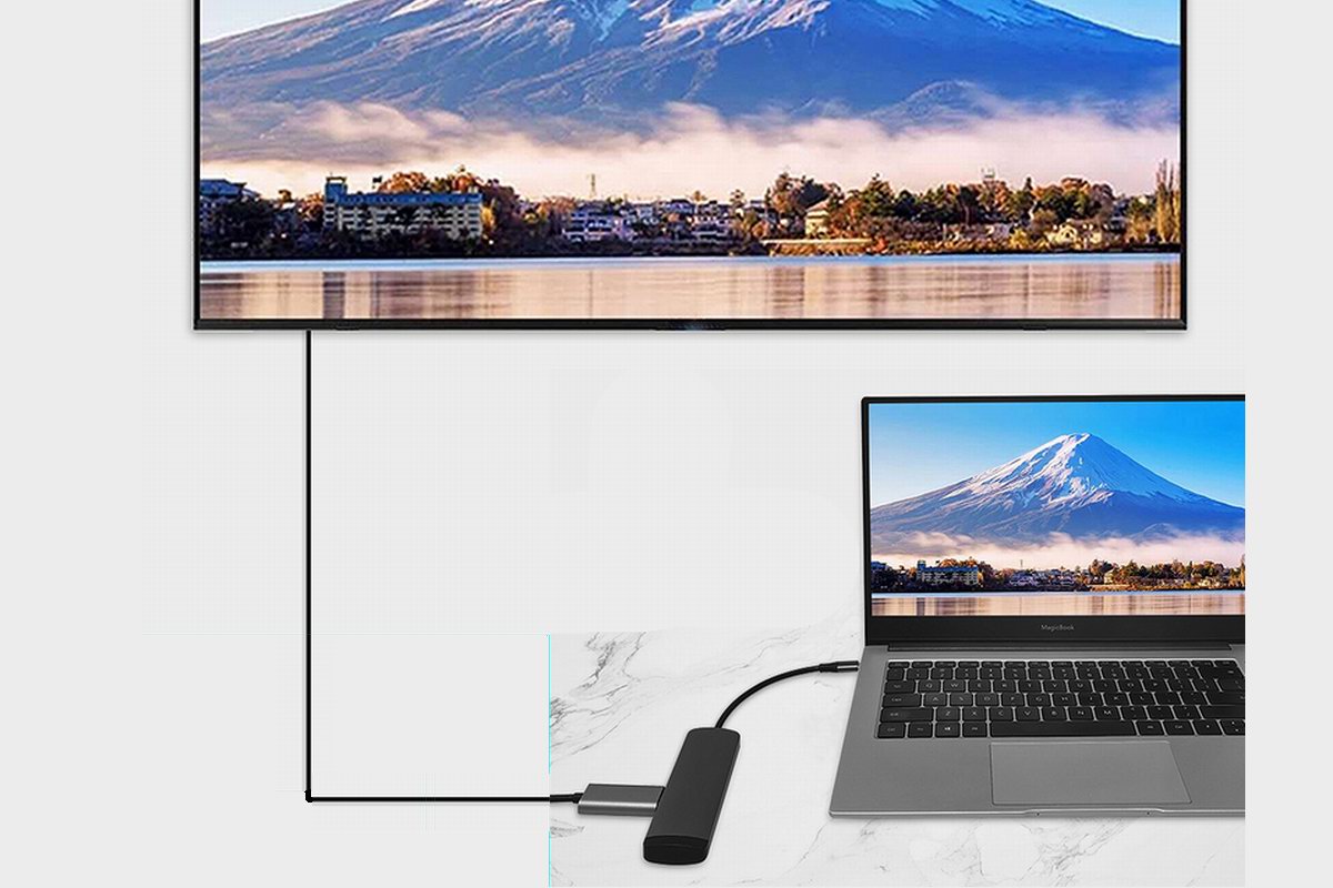商务用户经常需要对客户展示文档、PPT、视频等进行交互洽谈,在笔记本小屏幕上体验较差,AJIUYU 4G上网扩展坞带有HDMI视频接口,支持4K@30Hz高清视频传输,通过有线连接至大屏幕电视机、投影机,让商务展示交互更加清晰直观。