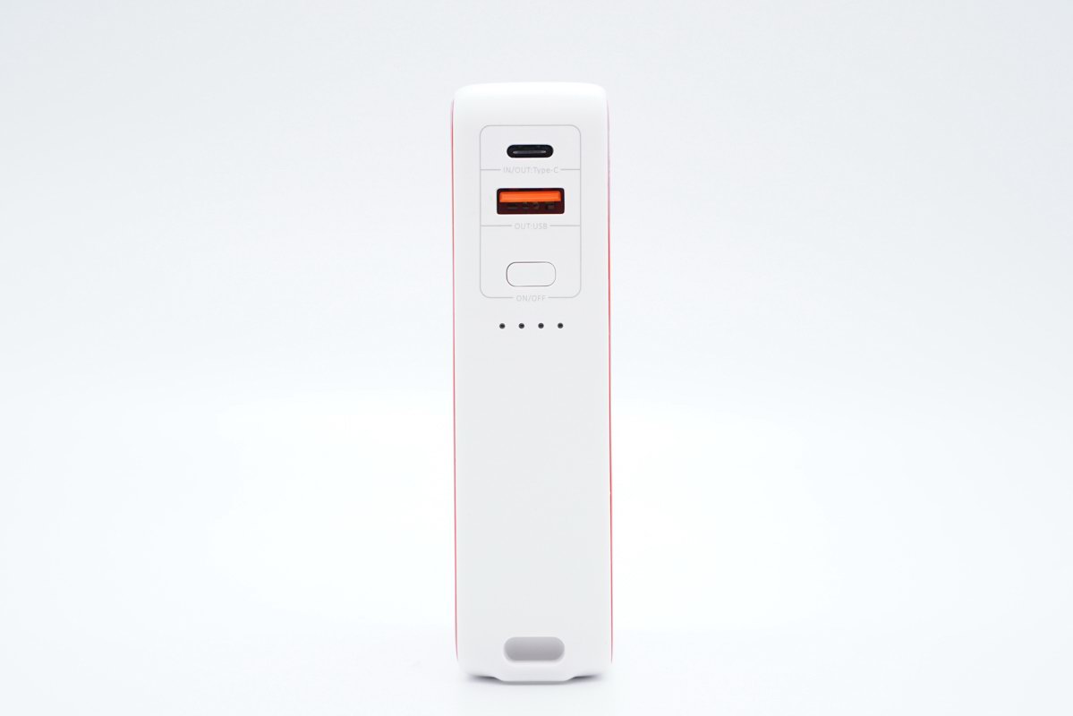 欧派奇22.5W双模充外观整体呈白色,壳体表面带有22.5W字样表示其最大输出功率为22.5W,四周边缘一圈红色增加细节。它内置锂离子电池与交直流电源转换器,可以作为移动电源外带使用,也可以插在插座上作为充电器使用,这类型产品叫“双模充”。