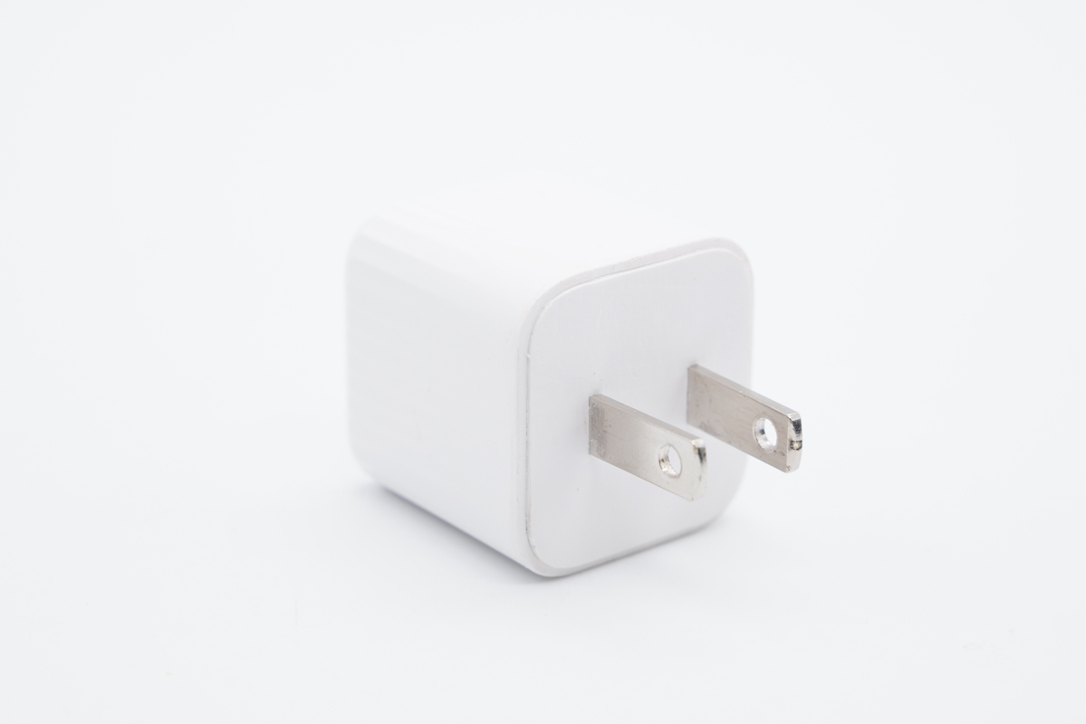 充电器的外壳为白色,采用阻燃PC材质外壳,表面哑光处理。