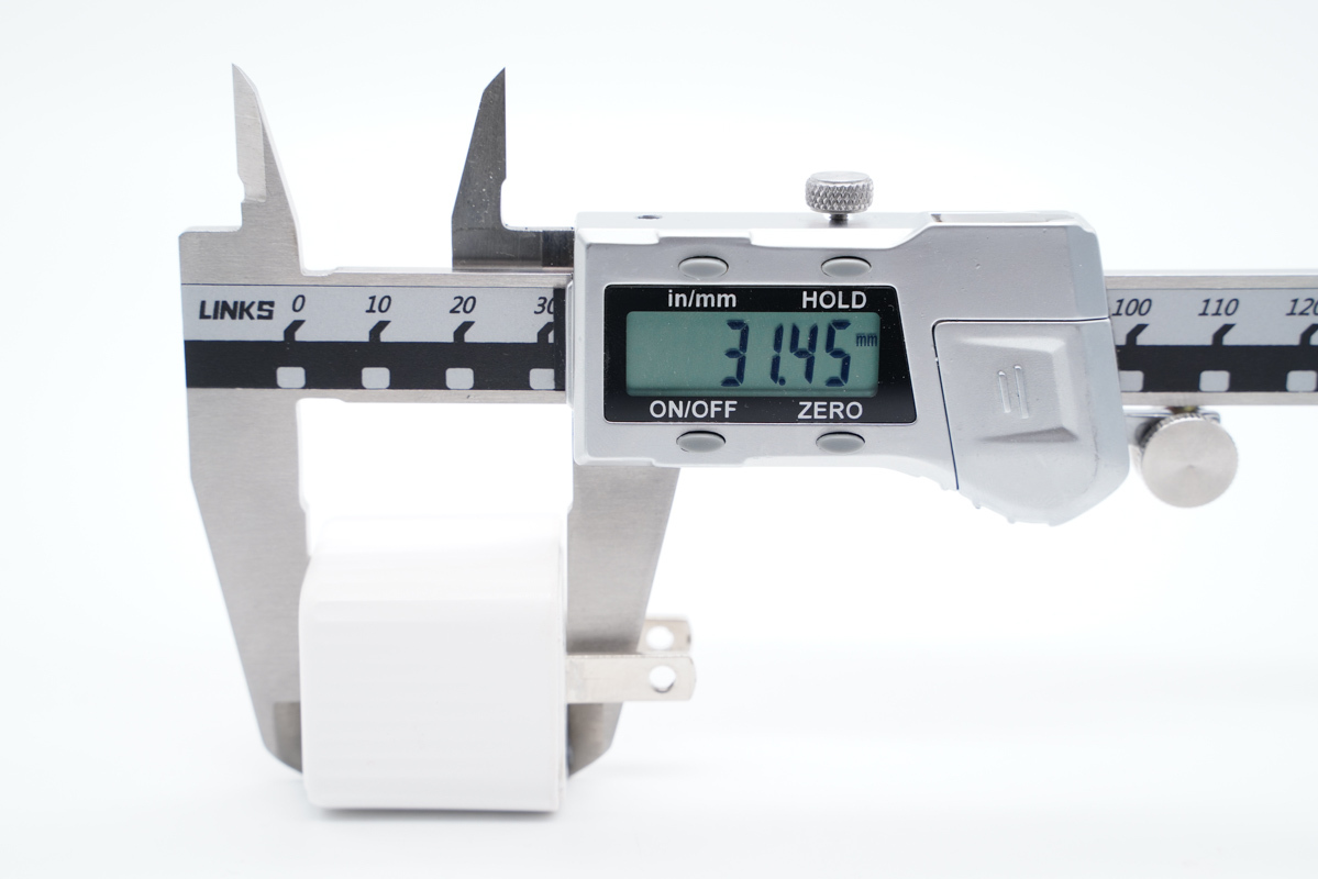 使用卡尺实测充电器的长度约为31.45mm(不含插脚)。