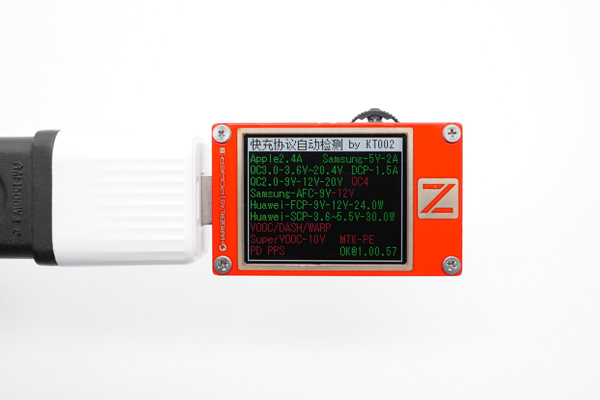 协议方面使用ChargerLAB的POWER-Z KT002读取USB-C接口的快充协议,测试表的显示屏几乎全绿,绿色代表USB-C支持的快充协议,这个数据还是很不错的。