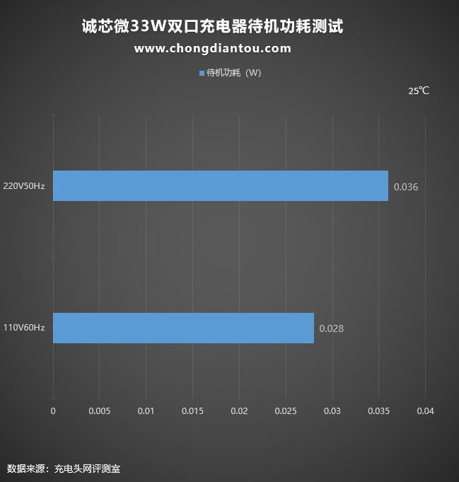 充电器如果经常插在插座上不使用也是会耗电的,只不过非常小而已。经过功率计测试,诚芯微33W双口氮化镓充电器在220V 50Hz的空载功耗为0.036W,换算下来一年损耗的电能约为0.31KW·h,若市价电为0.6元/KW·h,则充电器一年的电费约为0.18元左右。