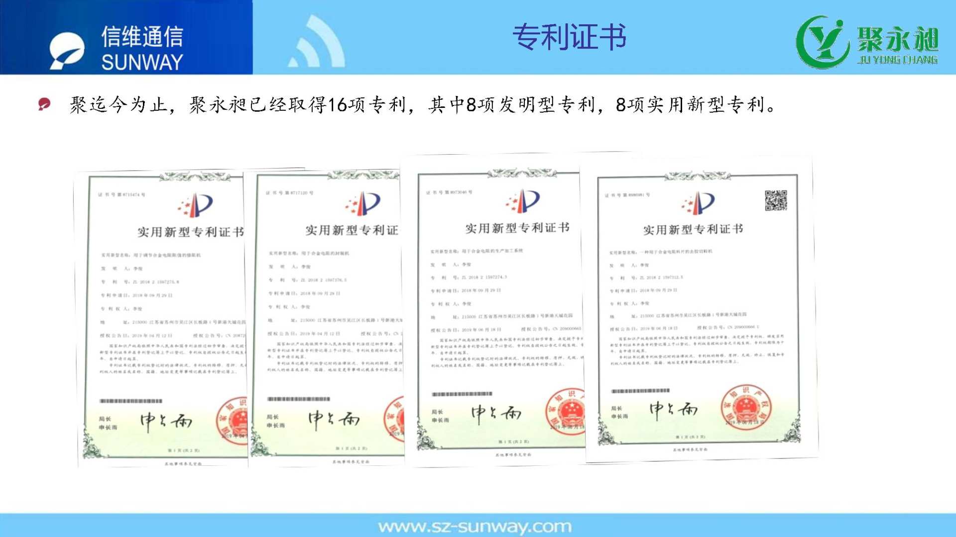 迄今为止,聚永昶已经获得了16项专利,其中包括8项发明型专利,8项实用新型专利。