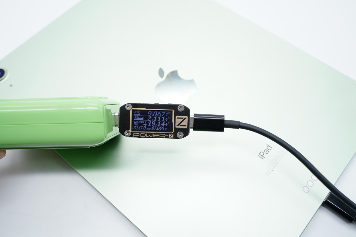 iPad Air 4支持USB PD充电协议,使用USB-C为平板充电,输出功率为9.06V/2.11A,19.14W。