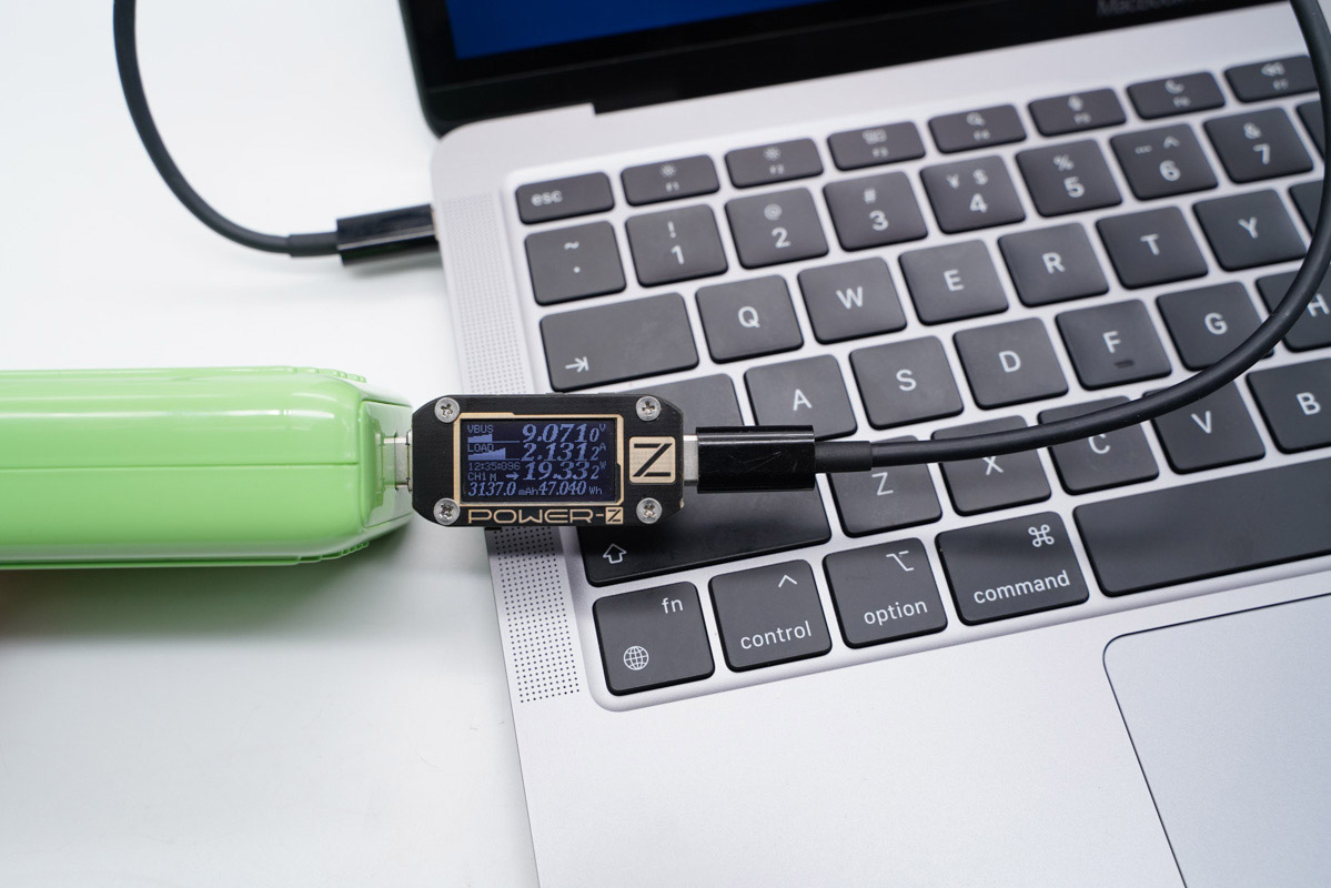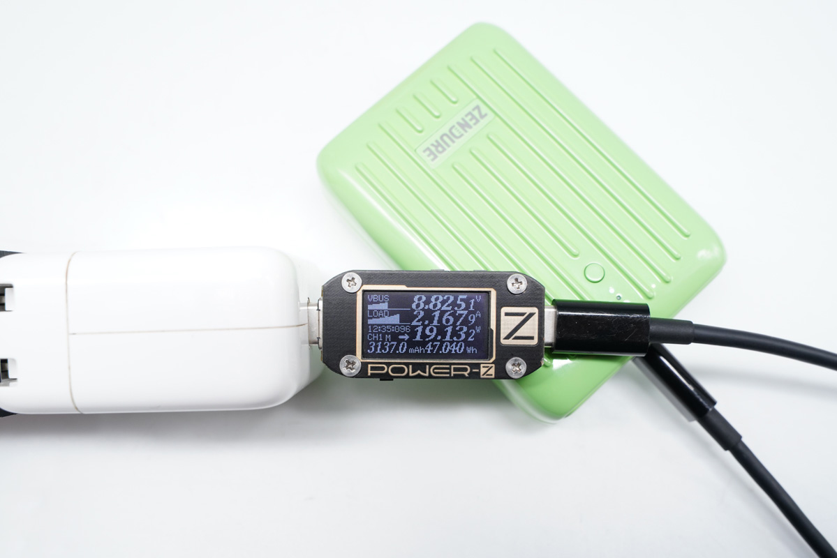 使用苹果30W PD充电器为 Zendure 征拓 Supermini Lightning 充电宝充电,功率为8.82V 2.16A,19.13W。