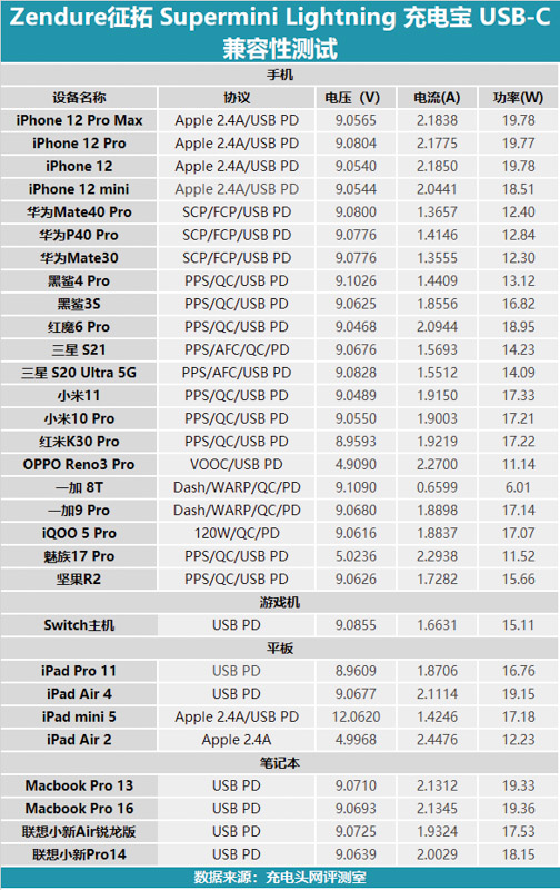 Zendure 征拓 Supermini Lightning 充电宝20W的输出功率可以说是为了 iPhone 12 系列用户量身打造。